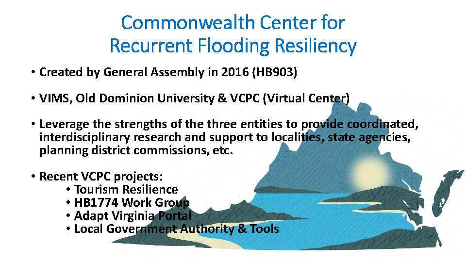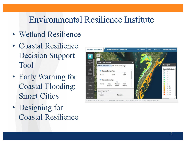 This year’s theme, Connecting Communities, Business, and Educators for Resilience Solutions, builds on last year’s inaugural conference goals of broadening the capacity for resiliency planning in the state, and it serves as a forum to highlight the resiliency programs developed under Governor Terry McAuliffe’s administration.