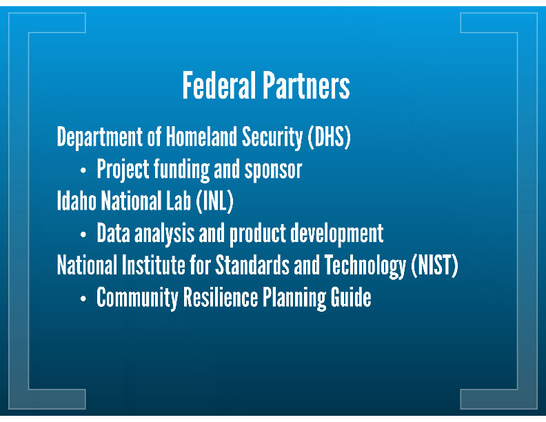 - Develop an understanding of resiliency priorities in different regions of the state;