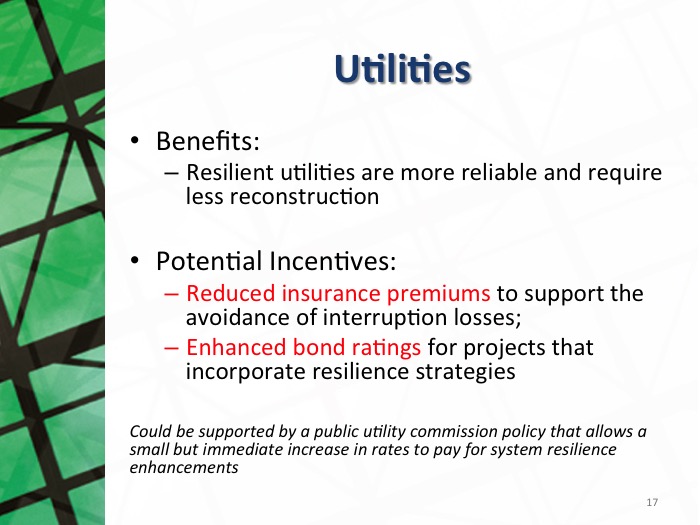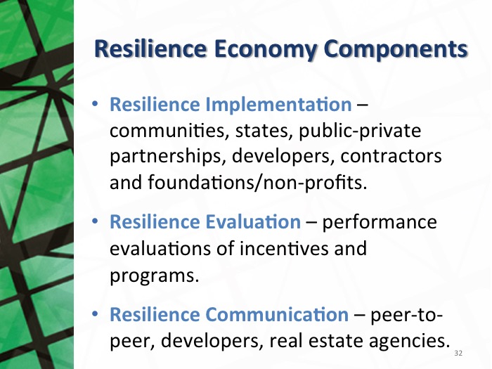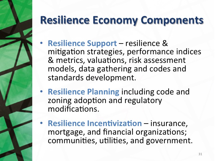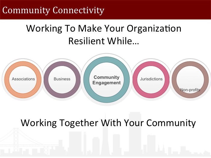 - Engage in networking with resiliency businesses, government representatives, and institutional and community organizations; and