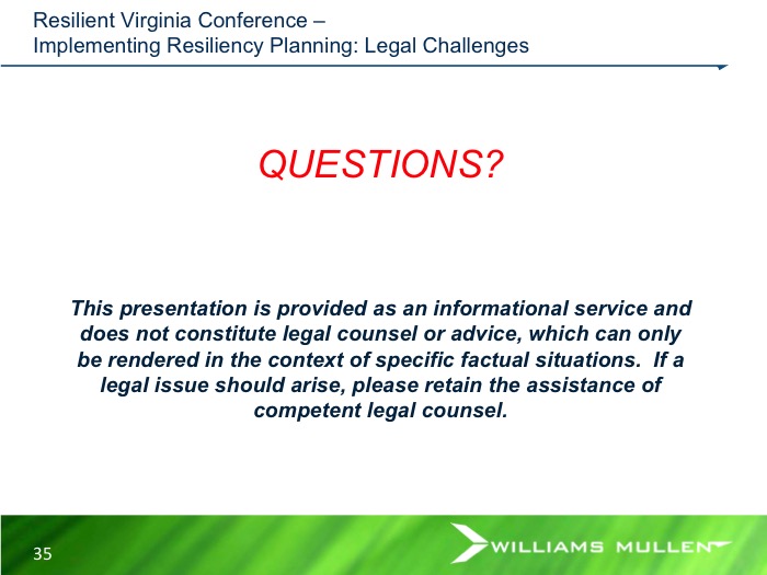 12:00 NOON–1:30 PM LUNCH WITH PANEL DISCUSSION: VIRGINIA’S RESILIENT FUTUREFacilitator: Brian Moran, Secretary of Public Safety and Homeland Security, Commonwealth of Virginia Listen to the August 2 Lunch Panel DiscussionCONCLUDING REMARKSNell Boyle, Resilient Virginia Chairperson, and Annette Osso, Managing Director, Resilient Virginia SPECIAL AFTERNOON MEETINGVML/VACO Go Green Virginia Workshop. For registration, visit www.vaco.org/education/go-green/. |