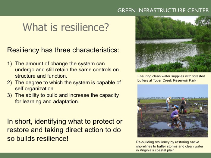 We recognize that “community resiliency plans” can include many aspects, including economic development, energy options, food security, infrastructure and buildings, ecosystem services, mitigation and emergency preparedness plans, land use planning, and social issues such as health and education. This forum will focus on the interconnection of four broad areas: