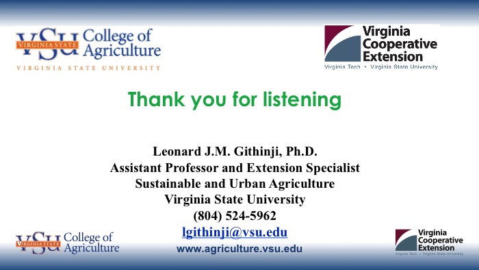 Leonard Githinji, Ph.D., Assistant Professor and Extension Specialist, Sustainable and Urban Agriculture, Virginia State University