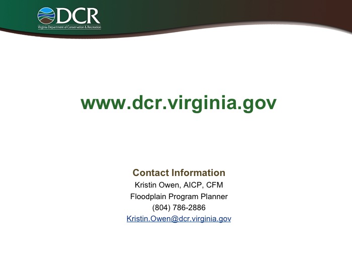Kristin Owen, AICP, CFM, Floodplain Program Planner, VADCR