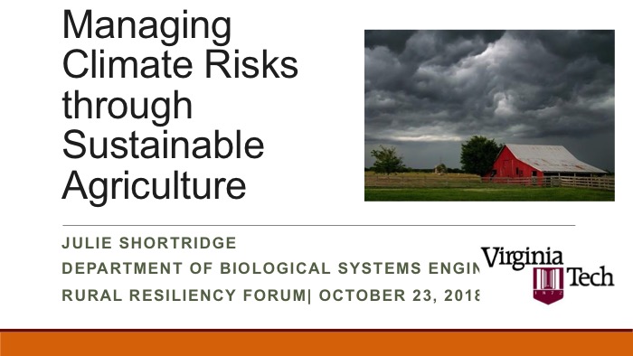 Julie Shortridge, Ph.D., Assistant Professor and Extension Specialist, Department of Biological Systems Engineering, Virginia Tech