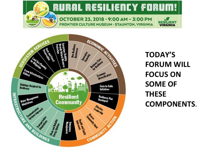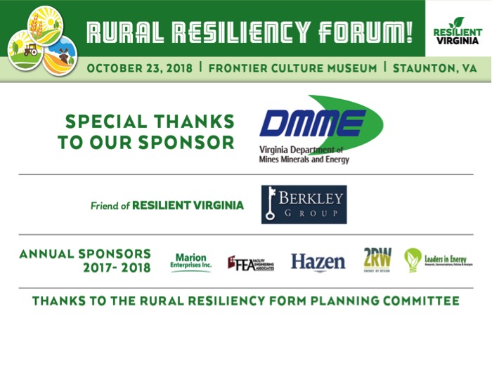 Resilient Virginia’s Rural Resiliency Forum was held October 23, 2018 at the Frontier Culture Museum in Staunton, Virginia.