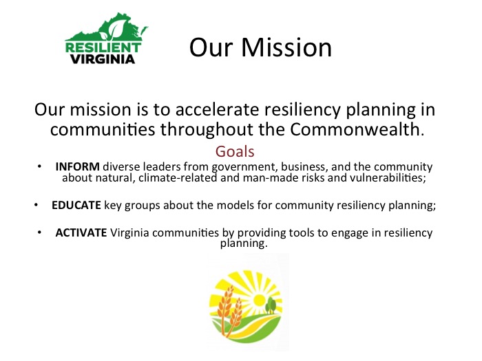 The Resilient Virginia Rural Resiliency Forum’s goal is to bring together public, private, and university stakeholders who are interested in improving the resiliency and prosperity of rural areas of the Commonwealth of Virginia. Anticipated outcomes of the forum include: