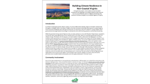 This report identifies four relevant categories of actions that could be taken to promote resilience in non-coastal Virginia: community organizing, education initiatives, economic productivity, and improving access to resources.