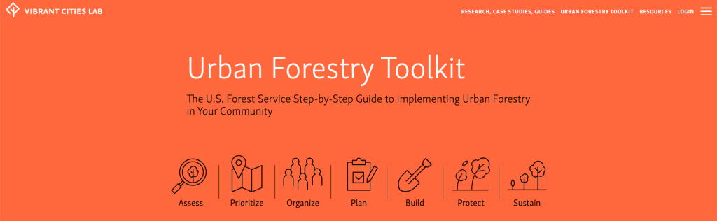 The Urban Forestry Toolkit was designed by Vibrant Cities Lab – a collaboration between the U.S. Forest Service, American Forests, and National Association of Regional Councils – to provide a step-by-step guide communities can use to implement urban forestry. The guide includes 7 stages with 17 steps that will take a community through the process from start to finish.